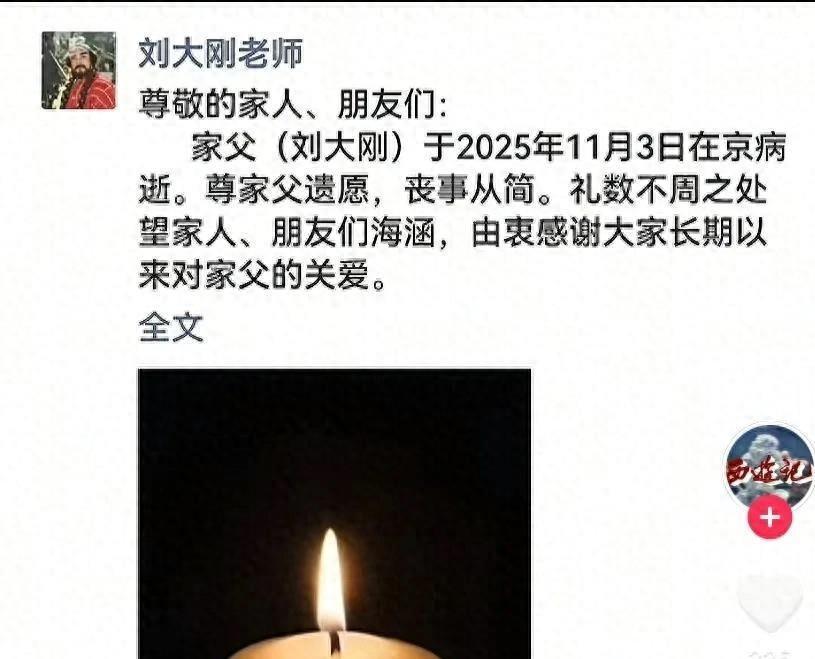 西游记续集沙僧刘大刚去世,享年78岁阅读之前,麻烦用你发财的小手点点“爱心”,创作不易,感谢大家的支持!每日更新更多优质内容。刚刚传来坏消息,刘大刚走了,因病在北京离世,时间是2025年11月3日,享年78岁,心里一下空了,沙僧的笑眼,还在脑子里转吗儿子在社交平台发讣告,说父亲走得安详,家属遵遗愿,丧事从简,孩子还特意道谢,感谢这些年支持与喜欢的朋友,这句话看着扎心,那批陪着七零后八零后长大的老艺术家,正在一个个远去吗